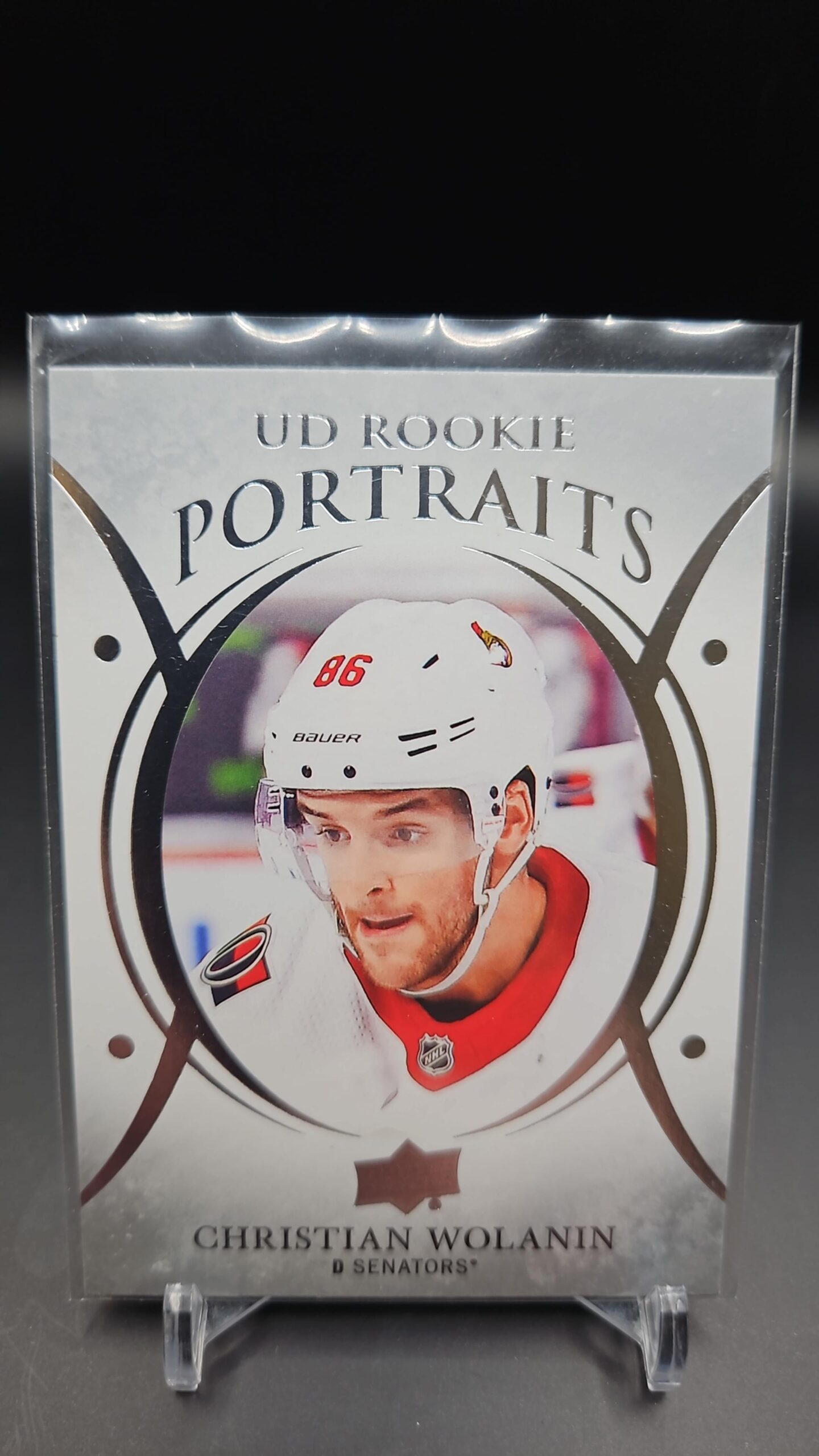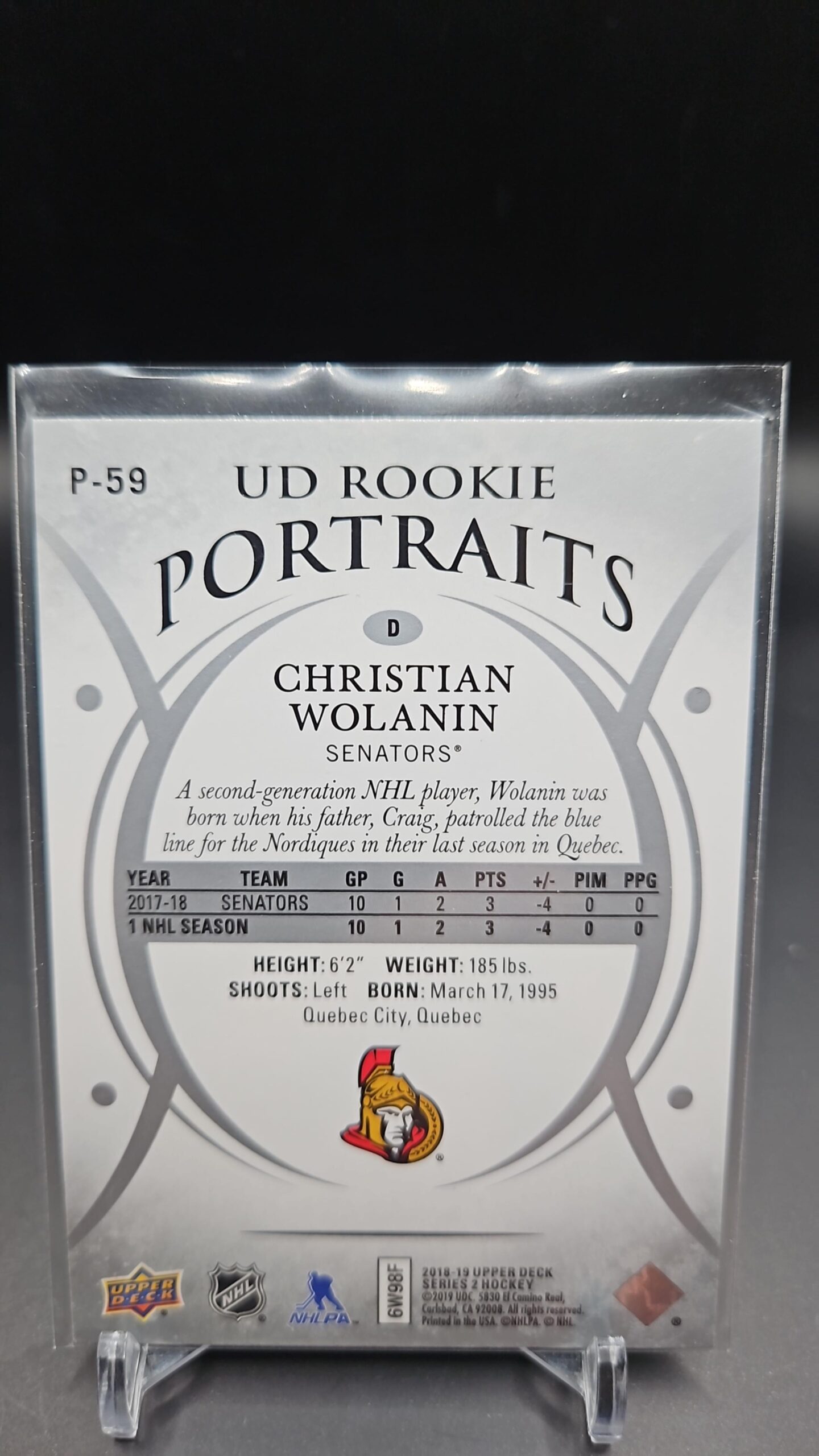 2018-19 Upper Deck Series 1 UD Portraits Rookies Christian Wolanin #P-59 rookie card is a top collectible for NHL and hockey fans.