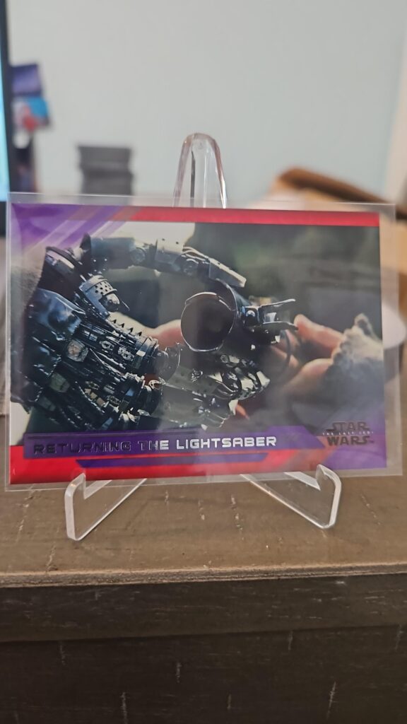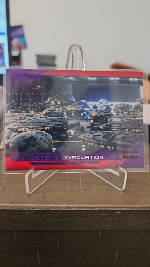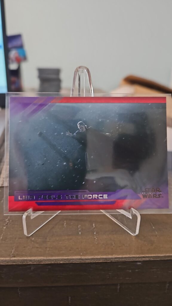 This Purple Parallel card celebrates the Millennium Falcon, the legendary starship that has played a central role throughout the Star Wars saga. “Aboard the Falcon” captures the spirit of adventure and resilience that defines the Resistance and its heroes. The limited purple border makes this card especially desirable for collectors seeking rare parallels and iconic scenes.