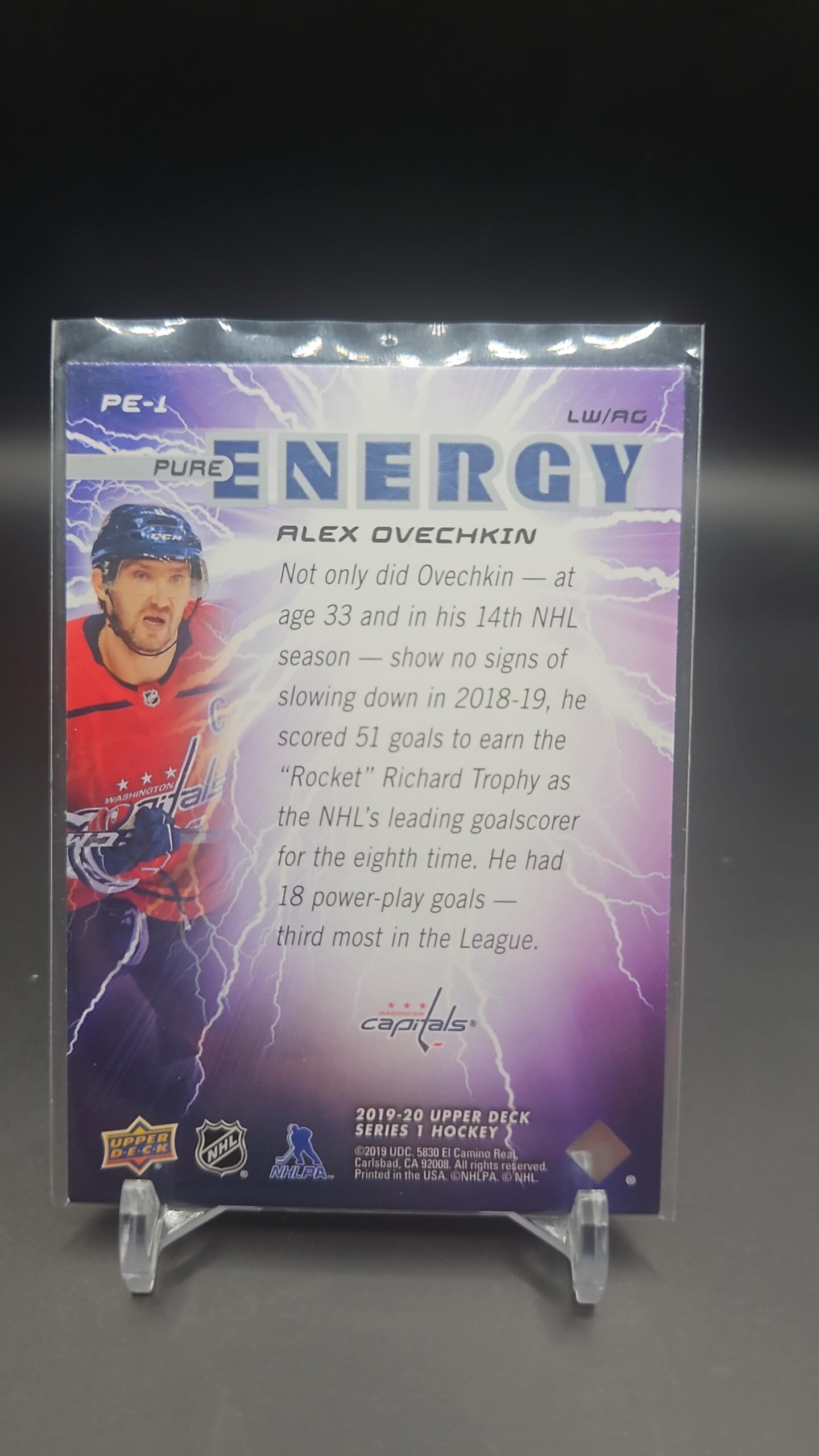 Alexander Ovechkin’s 2019-20 Upper Deck Hockey Pure Energy #PE-1—must-have insert card for Capitals and hockey card collectors.