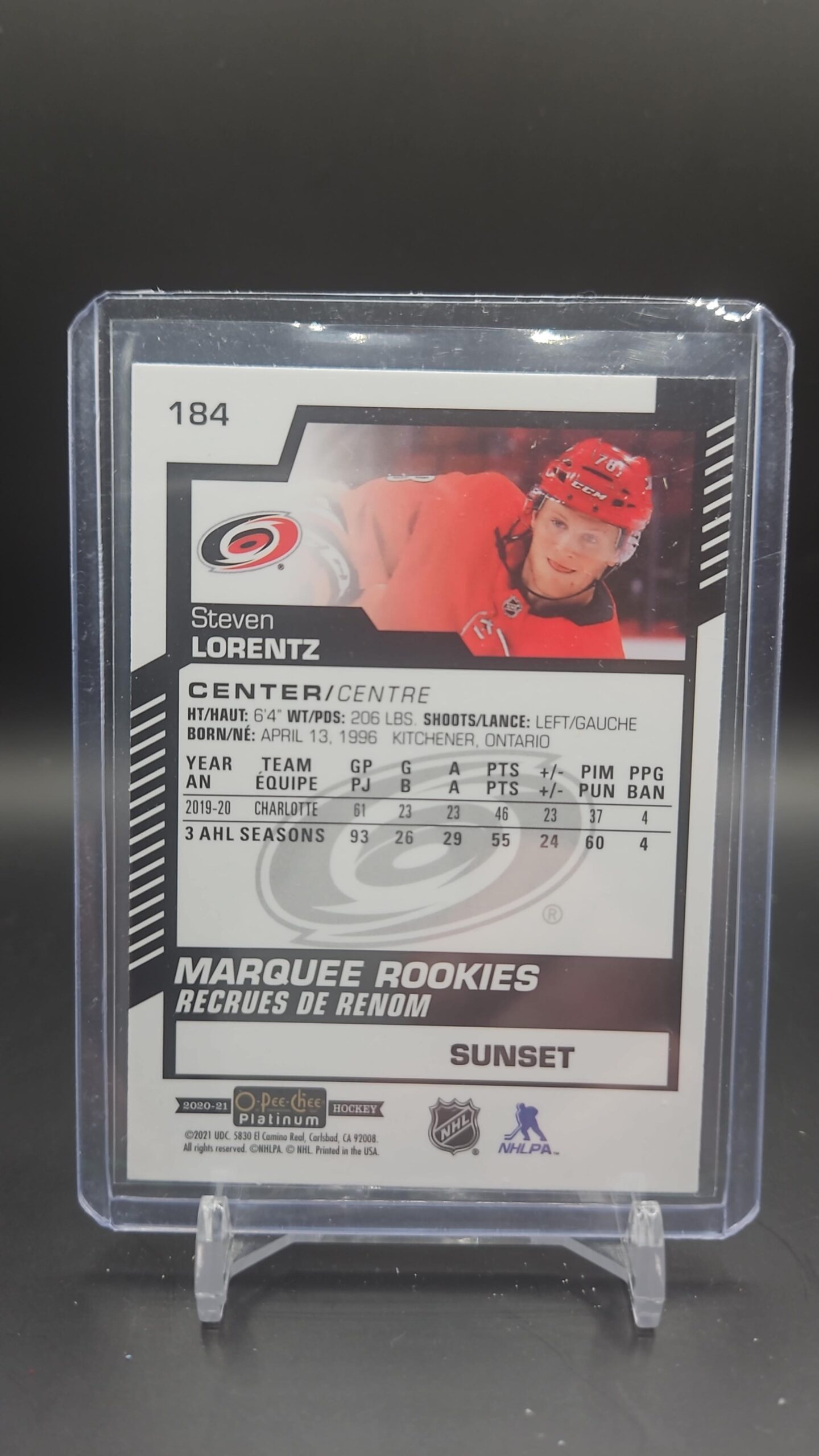 2020-21 O-Pee-Chee Platinum Marquee Rookies Sunset Steven Lorentz #184 Rookie RC