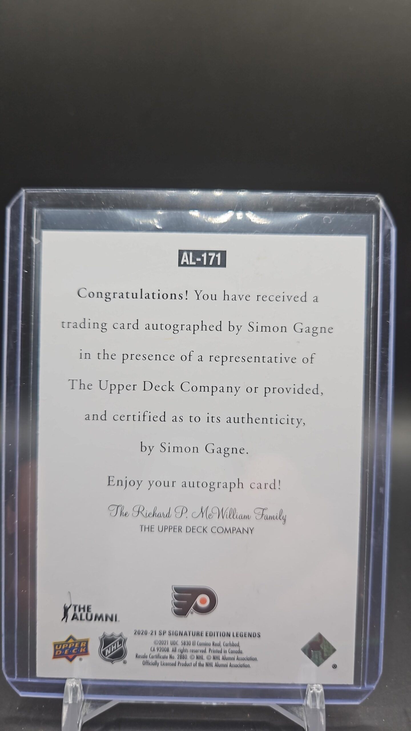 - Simon Gagne on-card autograph, card #AL-167