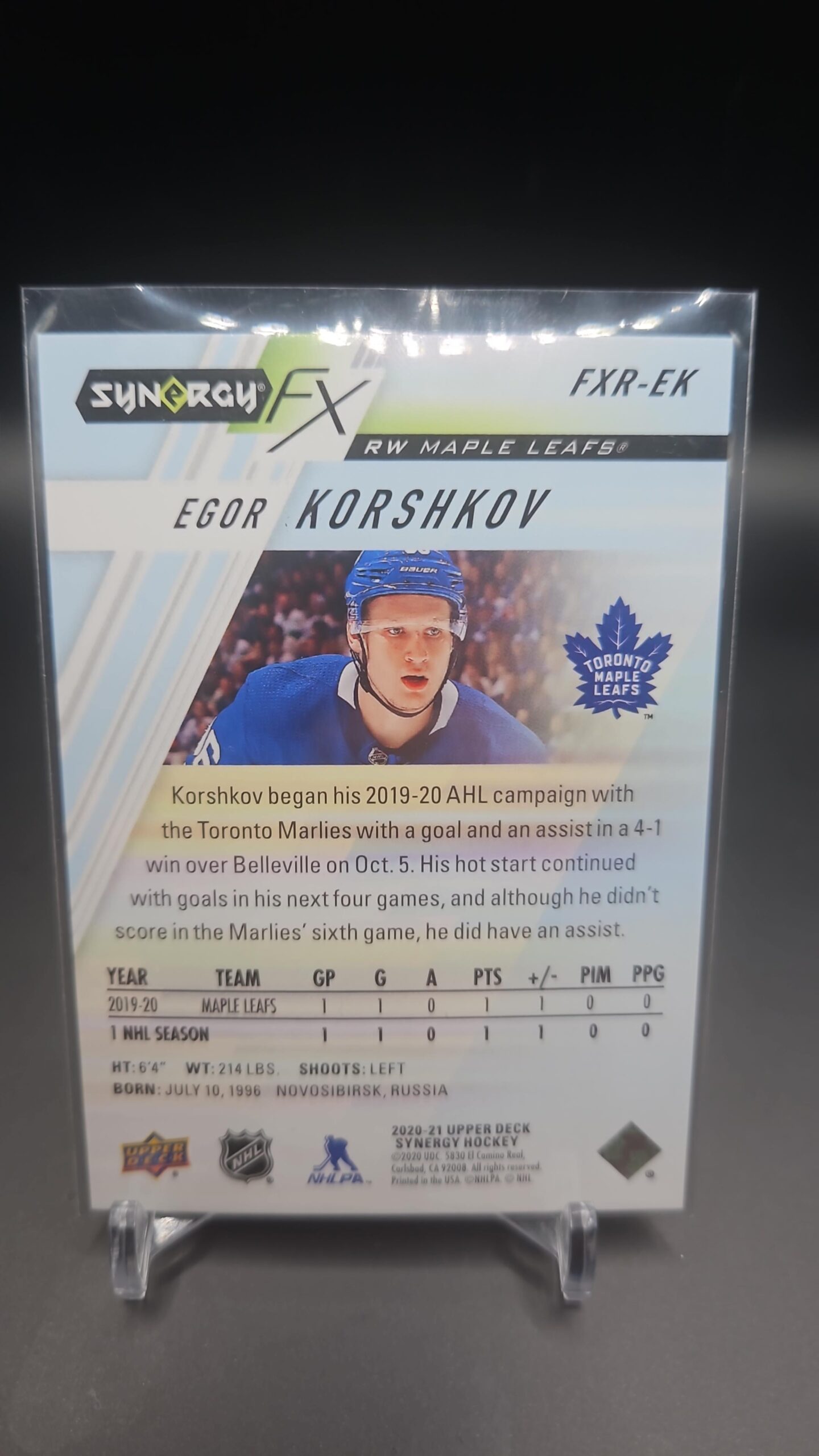 2020-21 Upper Deck Synergy FX Rookies Egor Korshkov /749 Toronto Maple Leafs Card